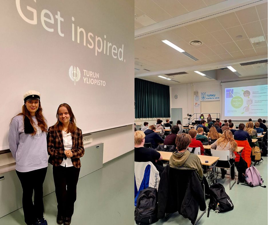 Viime torstaina 8.1. lääketieteen tekniikan opiskelija Emilia Tompuri ja tietotekniikan opiskelija Sofia Alainen vierailivat Kerttulissa. He esittelivät Turun yliopiston tekniikan tiedekunnan jatko-opintovaihtoehtoja ICT-lukiolaisille ja muille aiheesta kiinnostuneille opiskelijoillemme.