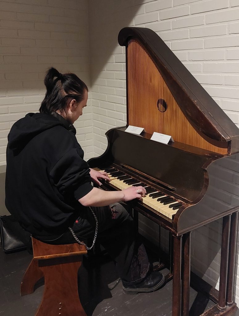 Torstaina MU2-opintojakson ryhmä vieraili Sibelius-museossa. Ohjelmassa oli opastus Sibelius-näyttelyssä sekä Finlandian kuuntelu museon konserttisalissa. Lopuksi kierreltiin vielä museon soitinnäyttelyissä. Sibelius-museosta löytyy myös useita soittimia, joita saa kokeilla. Kuvassa opiskelija kokeilee pianokanteleen soittoa.