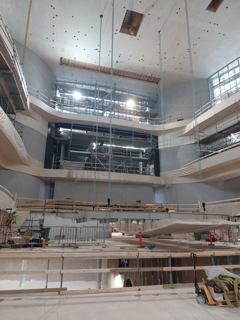 Marraskuussa Fuugassa järjestetään ensimmäiset konsertit. Työmaakierroksella kuultiin lisää rakennuksen työvaiheista ja esimerkiksi siitä, millaisia akustisia ratkaisuja konserttisaliin ja pienempään saliin Ateljeehen on tehty. Kiitokset vierailusta Talonrakennusteollisuus ry:lle ja Hartelalle!