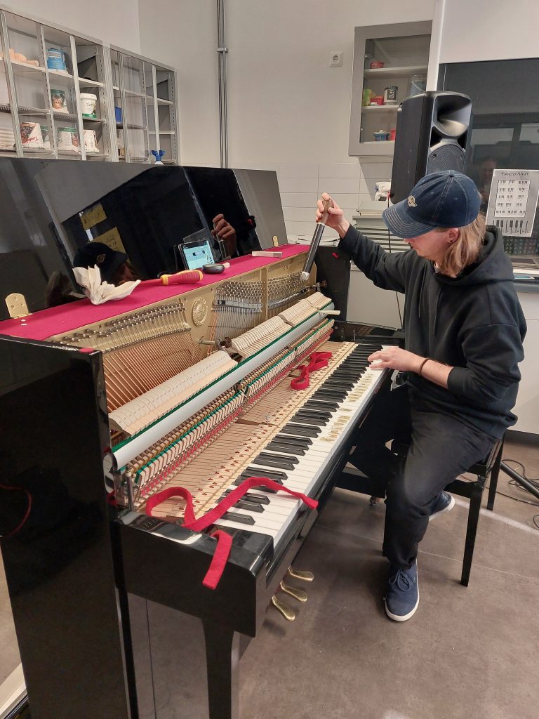 Viime viikolla pianonvirittäjä Jonne Luoma kävi virittämässä ja huoltamassa musiikinluokan akustisen pianon kuntoon. Pianonvirittäjän ammatillisen perustutkinnon voi opiskella Helsingin konservatoriossa. Ammatissa työskentely vaatii esimerkiksi tarkkaa kuuloaistia ja sävelkorvaa, pitkäjänteisyyttä ja keskittymiskykyä, sorminäppäryyttä sekä teknistä päättelykykyä. Nyt piano soi taas miellyttävämmin ja on ahkerassa käytössä taas vitosperiodissa alkavilla musiikin opintojaksoilla.